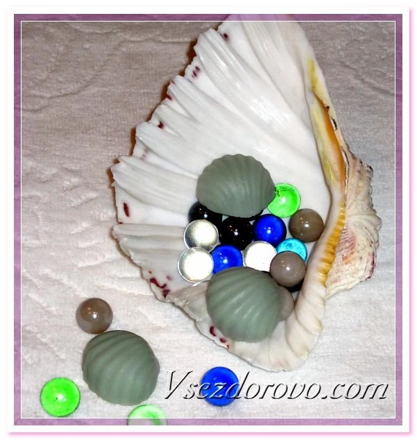Если не использовать никакие красители, то плиточки получатся кремового или бледно-желтого цвета. Можно добавить немного косметической мики, с ней готовые плиточки приобретут необычный цвет и чуть заметное сияние.