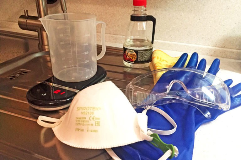 Крайне важны меры безопасности, защита лица и рук. Щелочь и свежеприготовленное мыло должны быть недоступны для детей и домашних животных.
