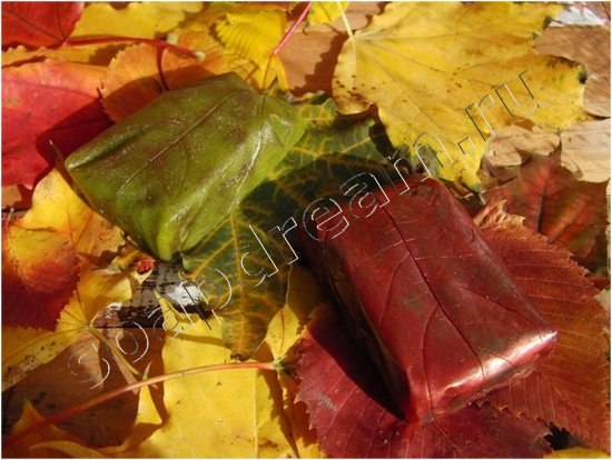 Готово! Получается нарядное мыльце, как будто обернутое в кленовый лист.