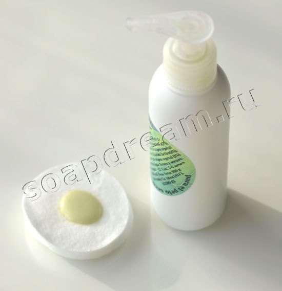2. Нанести средство на ватный диск, и протереть лицо (кроме области вокруг глаз).