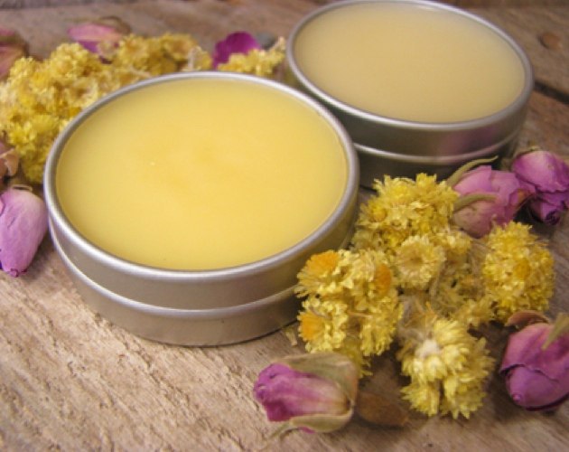 Убрать с огня, чтобы масляная смесь слегка остыла (достаточно 1-2 минут). При этом надо следить, чтобы масса сильно не загустела. Потом добавляем вышеперечисленные эфирные масла, тщательно все перемешиваем. Заливаем смесь в выбранную емкость для хранения бальзама. После остывания и загущения смеси бальзам полностью готов к применению.