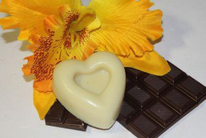 Теперь, собственно, приступим к самому процессу мылотворчества. Растапливаем белую основу, добавляем шоколадный краситель, выбранное масло и отдушку, заливаем в форму. Оставим застывать, а пока займемся кремом. Растопленную белую основу смешиваем с кремообразной