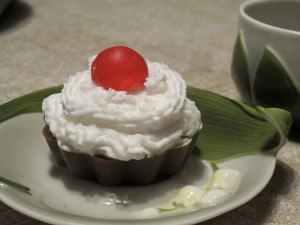 украшаем на своем вкус – ягодкой, шоколадной крошкой или маленькими мыльными мармеладками. А пока наше пирожное застывает можно заварить себе чашечку вкусного чая.