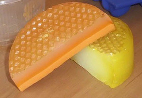 На дно формы для мыла положите вощину (натуральный продукт из пчелиного воска, она будет выполнять функцию