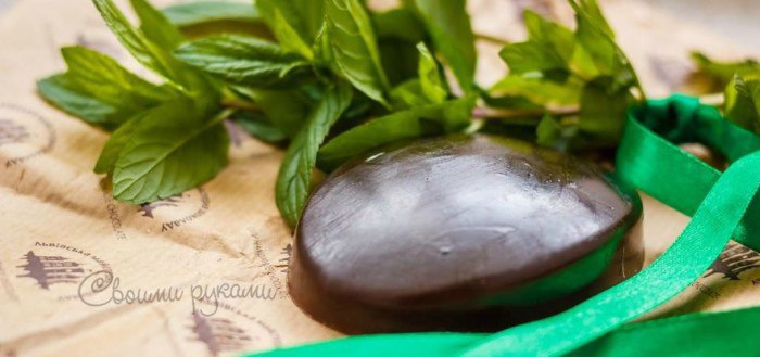 Натрите мыло, добавьте оливковое и касторовое масла, травяной отвар и растопите на водяной бане. Влейте мед, витамины и мятное масло. Перемешайте и снимите с огня. Вылейте мыло в формы.