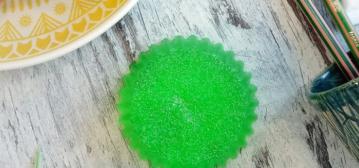 Оставьте мыло на 2-3 часа, пока оно не затвердеет, затем вынимайте его и из формы.