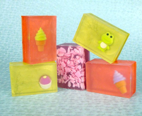 «Цукаты» можно полить мылом и сверху, предварительно вынув его из формы, создав иллюзию стекающего крема.