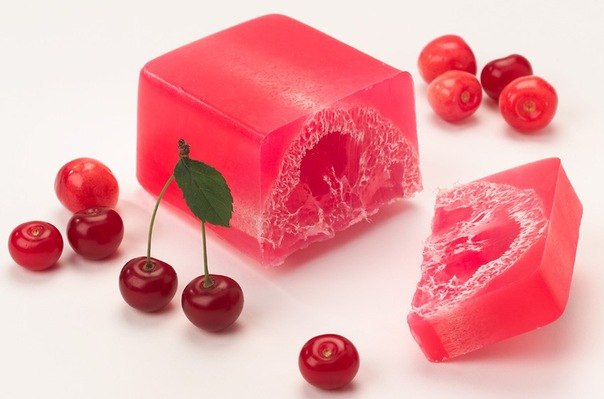 Природа пробудилась ото сна, и потому так хочется окунуться в яркие ароматы лета. И хотя время сочных плодов еще не наступило, истинный мыловар всегда знает, как ему поступить в подобной ситуации. Наполнить свою ванную фруктовыми запахами так просто! Несколько капель пищевого ароматизатора в мыло или шампунь, и водные процедуры приобретут совсем другое «звучание». Сегодня мы предлагаем приготовить мыло с чудесным вишневым ароматом. Продукт обогащен маслом Ши (карите), обладающим чудесными регенерирующими и омолаживающими свойствами. Но это не все подарки. «Сладкая вишенка» - это мыло с люфой, которая, как известно, хорошо массирует кожу, улучшая ее кровообращение.