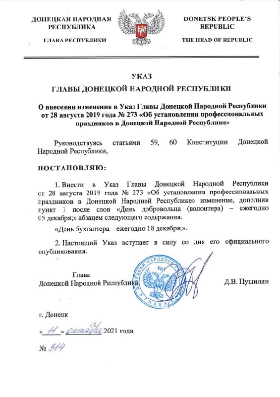 ❕Глава ДНР Д. В. Пушилин установил в Республике профессиональный праздник бухгалтера.