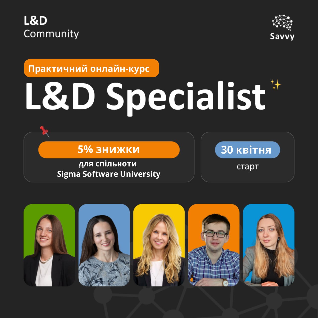 Цього квітня L&D Community та SavvyUA запускають онлайн-курс L&D Specialist — для тих, хто хоче розібратись у цій ролі зсередини і зрозуміти, як будувати навчання від запиту до результату 🚀