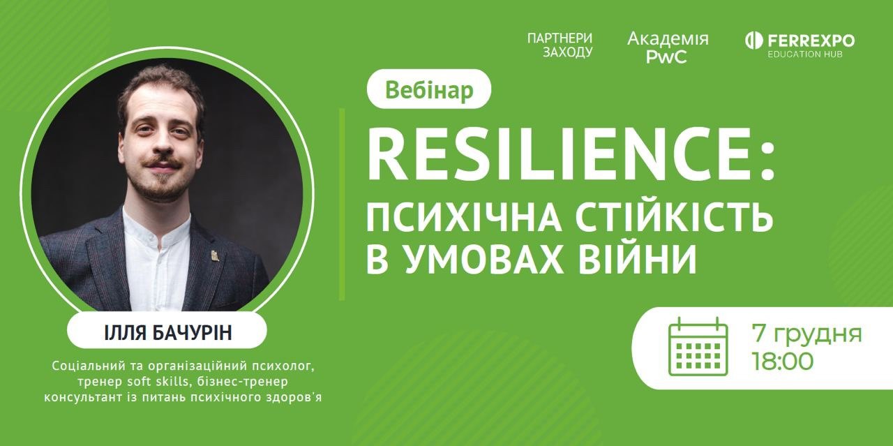 Сьогодні, 07 грудня, о 18:00 Ferrexpo Education Hub разом із Академією PWC запрошують на безкоштовний вебінар на тему: «Resilience: психічна стійкість в умовах війни» 🙂
