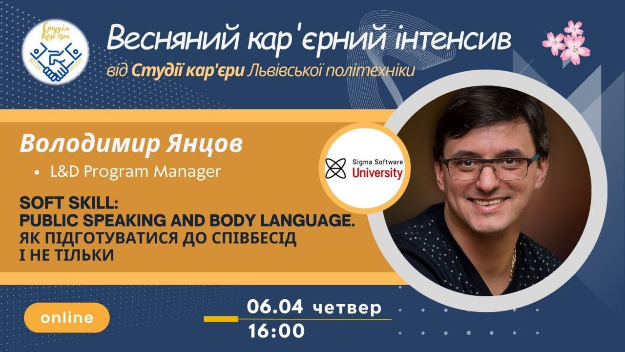 🔥 Про ці навички розкаже Янцов Володимир, L&D Program Manager в Sigma Software на вебінарі від Студії кар'єри Львівської політехніки.