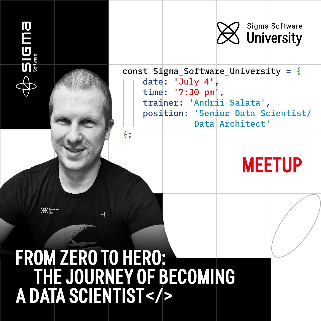 Реєструйся та пірнай в світ Data Science разом із Андрієм Салатою, Senior Data Scientist/Data Architect в Sigma Software, який познайомить тебе з цим цікавим Data Science світом.