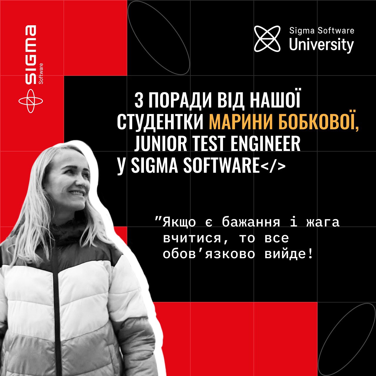 Ви вже знайомі з Мариною, випускницею нашого Software Testing курсу, яка зараз є Junior Test Engineer в Sigma Software 😎