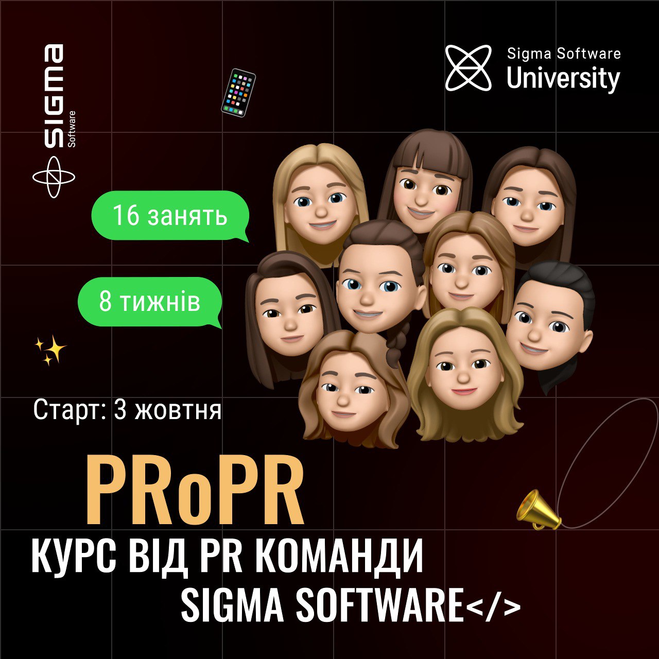 🔥 Всі аспекти PR, тільки актуальні знання, 20-тирічний досвід PR команди Sigma Software у одному курсі. Це те, що чекає тебе вже цієї осені разом із Sigma Software University 🤩