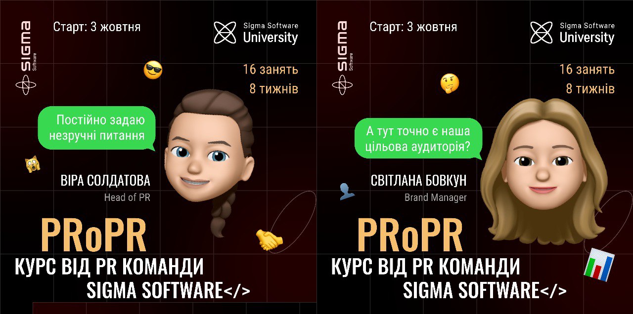 🔥 Всі аспекти PR, тільки актуальні знання, 20-тирічний досвід PR команди Sigma Software у одному курсі. Це те, що чекає тебе вже цієї осені разом із Sigma Software University 🤩
