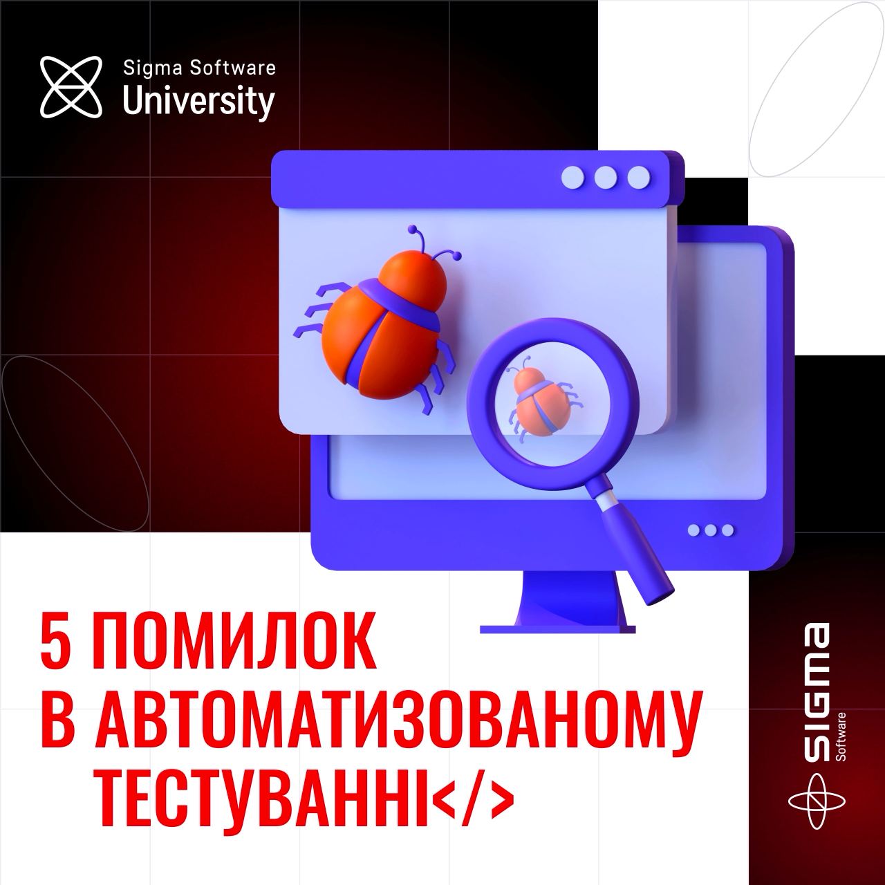 Автоматизація тестування – часто важлива для успішного та ефективного життєвого циклу продукту. Але ми спитали у нашого тренера Олексія Вовка, Senior Test Automation Engineer у Sigma Software, ТОП 5 помилок, з якими можуть зіткнутися автоматизатори та як їх уникнути: