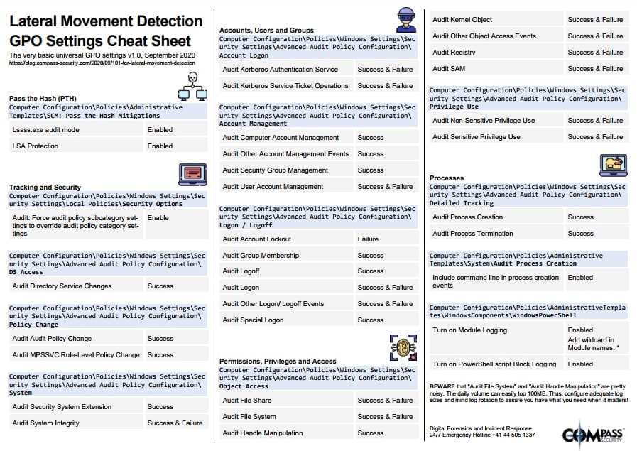 🔖 Lateral Movement Detection GPO Settings Cheat Sheet.
