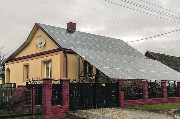 Житель города Дубно (Ровенская область, Украина) Василий Власюк установил солнечную электростанцию мощностью 30 кВт — и уже год зарабатывает на возобновляемых источниках энергии. По словам предпринимателя, 108 фотоэлектрических модулей смонтированы на крыше дома и металлических опорах над гаражом выработали больше электроэнергии в мае.