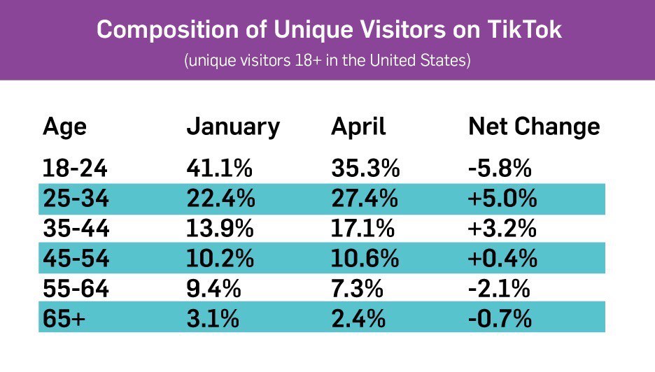 Что интересно, так это изменение демографии на площадке. Те, кто тесно сотрудничает с платформой TikTok, заметили рост не подростковой демографии.