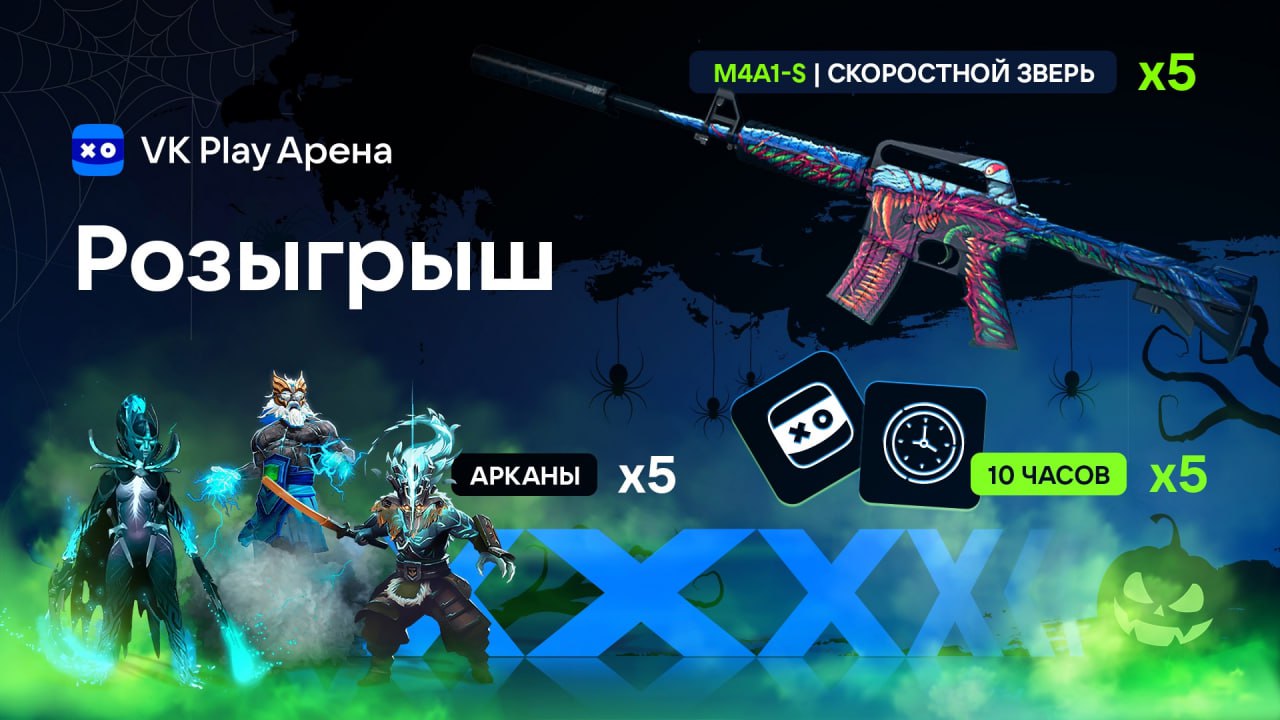 1 место: 10 часов игрового времени в VIP-зале + M4A1-S Скоростной зверь или Аркана из Dota 2 на выбор.