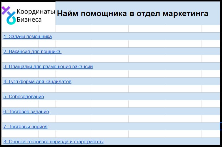 - В материалах для найма помощника в отдел маркетинга - собран подробный план действий, как нанять человека, с зп от 20 до 50т.р., который будет по 5-8 часов в день искать вам новых клиентов, собирать анализ конкурентов, упаковывать соцсети, делать лендинги и пр.