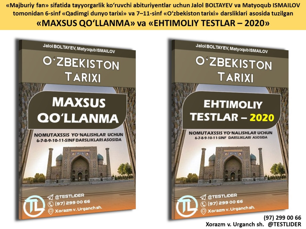 👉 @TESTLIDER – Tarix fani repetitorlari va abituriyentlar uchun