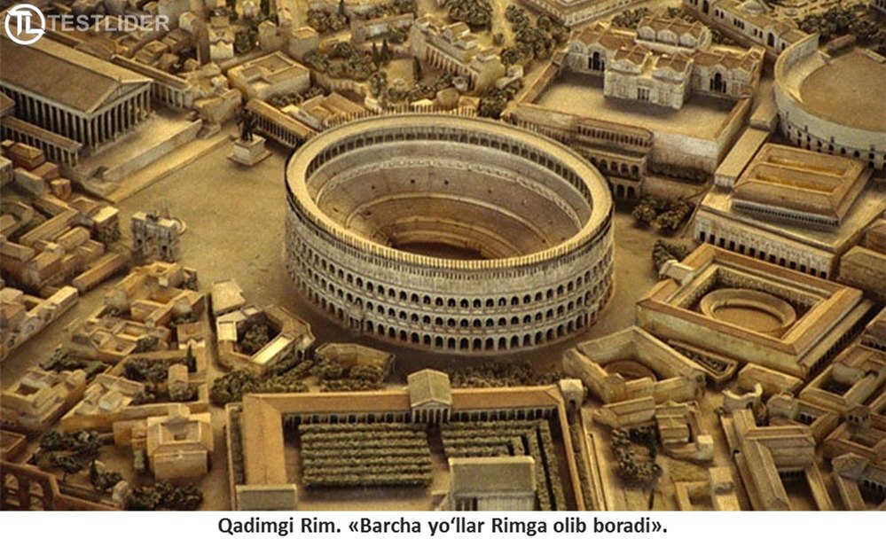«Barcha yo‘llar Rimga olib boradi» — Bu fikr ilk bor fransuz yozuvchisi Lafonten (XVII asr) masalida uchraydi. Ammo, mohiyatan Rim shahri bunyod etilgan dastlabki davrlardayoq bu jumla dolzarb ahamiyat kasb etgan. Barcha yo‘llar imperiyaning bosh shahri bilan bog‘lagan.