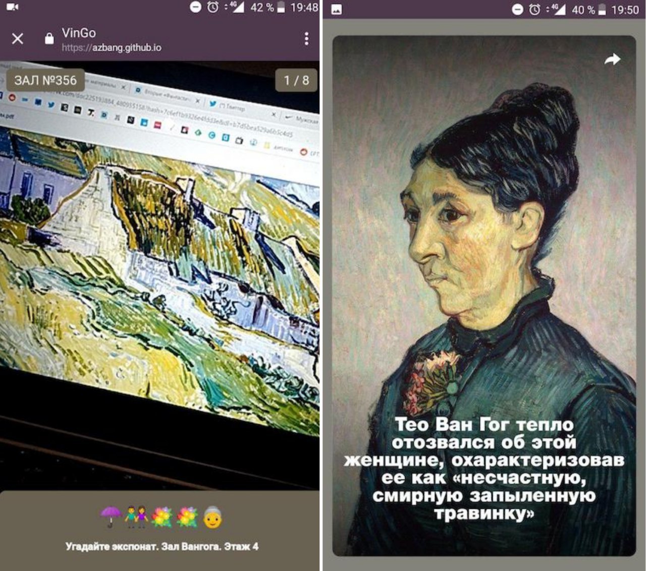 Приложение VinGo превращает прогулку по музею в игру: по набору эмодзи нужно угадать картину, найти её и, наведя камеру, получить историческую справку. Его придумали два школьника из разных российских городов.