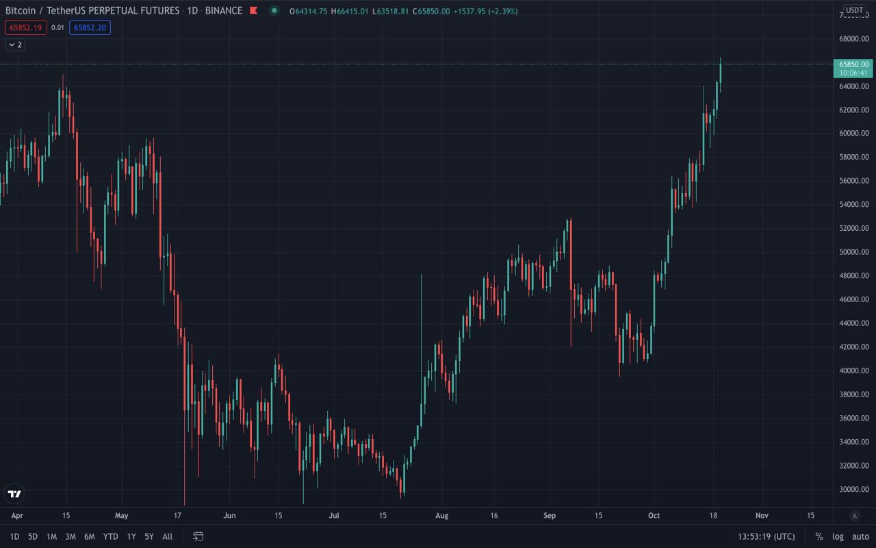 π Π‘ΡΠ°ΡΡΠΎΠ²Π°Π»ΠΈ ΡΠΎΡΠ³ΠΈ ΠΏΠ΅ΡΠ²ΡΠΌ Π² Π‘Π¨Π ΡΡΡΡΠ΅ΡΡΠ½ΡΠΌ ETF ΠΎΡ ProShares ΠΠ° ΠΡΡ-ΠΠΎΡΠΊΡΠΊΠΎΠΉ ΡΠΎΠ½Π΄ΠΎΠ²ΠΎΠΉ Π±ΠΈΡΠΆΠ΅ (NYSE) ΠΏΠΎΠ΄ ΡΠΈΠΊΠ΅ΡΠΎΠΌ BITO Π½Π°ΡΠ°Π» ΡΠΎΡΠ³ΠΎΠ²Π°ΡΡΡΡ ETF Π½Π° Π±Π°Π·Π΅ Π±ΠΈΡΠΊΠΎΠΈΠ½-ΡΡΡΡΠ΅ΡΡΠΎΠ² ΠΎΡ ΠΊΠΎΠΌΠΏΠ°Π½ΠΈΠΈ ProShares. ΠΠ° ΡΠΎΠ½Π΅ Π·Π°ΠΏΡΡΠΊΠ° ΠΏΠ΅ΡΠ²Π°Ρ ΠΊΡΠΈΠΏΡΠΎΠ²Π°Π»ΡΡΠ° ΠΎΡΡΠ΅Π°Π³ΠΈΡΠΎΠ²Π°Π»Π° ΠΎΠ±Π½ΠΎΠ²Π»Π΅Π½ΠΈΠ΅ΠΌ Π»ΠΎΠΊΠ°Π»ΡΠ½ΠΎΠ³ΠΎβ¦