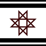 Flag of the Baltic Archeological Expedition in Prussia, (831-2/1978-9), featuring a white raven derived from archeological findings within the black-red color scheme of a sunset by the Baltic Sea.