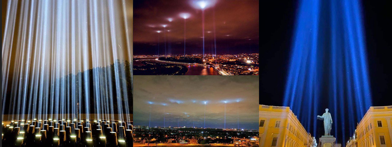 В Киеве и еще 20 городах Украины активисты разместили более сотни прожекторов, которые светят в небо, свет от которых можно было увидеть из разных уголков городов.