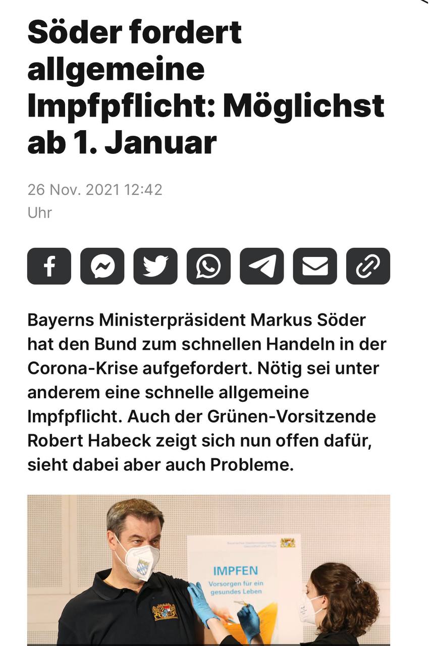 Söder fordert Impfpflicht, nach Möglichkeit schon ab 1. Jänner!