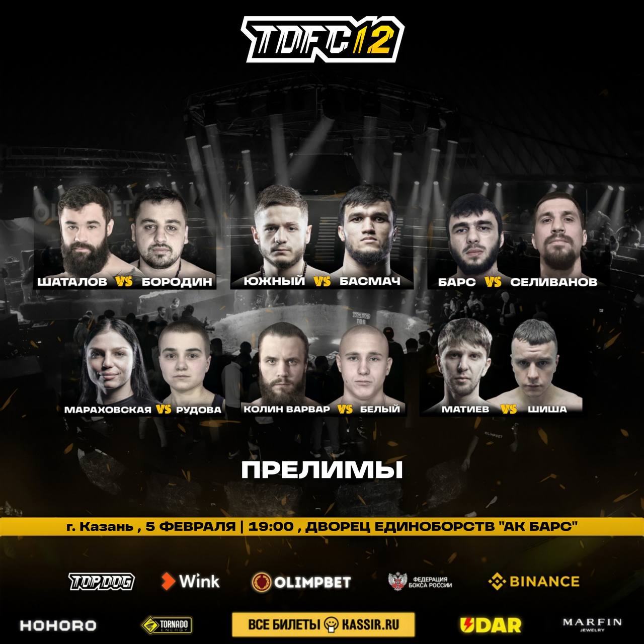 5 ФЕВРАЛЯ В 21:00 (ПО МСК) СМОТРИ ПРЯМУЮ ТРАНСЛЯЦИЮ TDFC 12 НА ТЕЛЕКАНАЛЕ UDAR