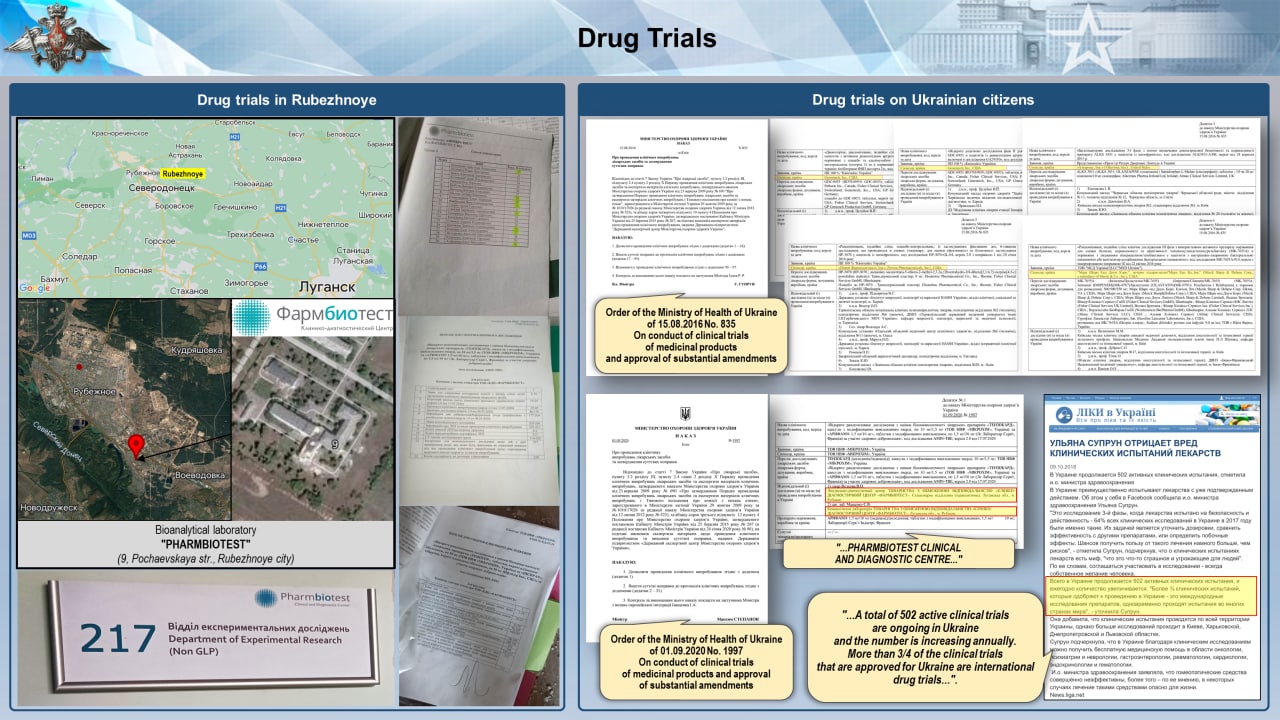 ▫️A few weeks ago, during the special military operation, Rubezhnoye in Lugansk People's Republic was liberated. Documents have been found in the laboratory of the Pharmbiotest medical centre located at 9 Pochaivska Street, confirming that research had been carried out in Ukraine for several years on behalf of the so-called Big Pharma. Clinical trials of unregistered drugs with potentially serious side-effects have been carried out on local residents.