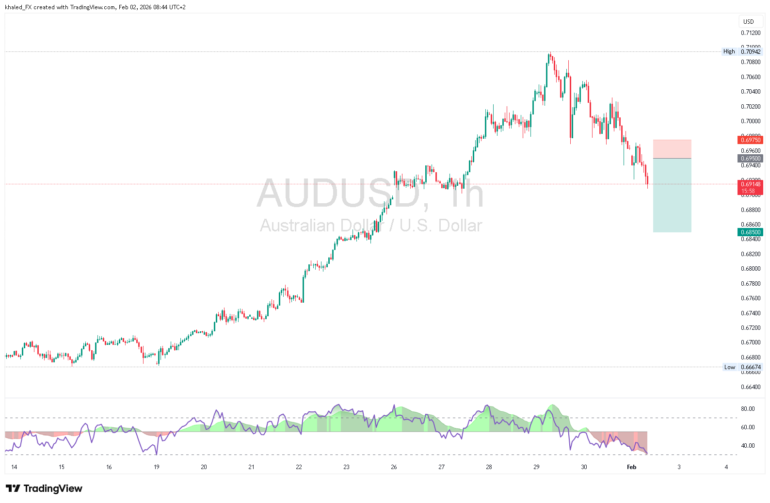 📉 [Sell Limit] AUD/USD - Bearish - We look to Sell at 0.6950