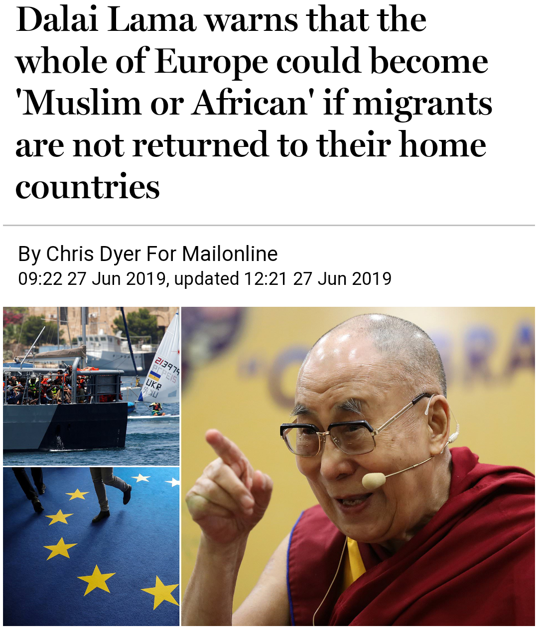 https://www.dailymail.co.uk/news/article-7187235/Dalai-Lama-warns-Europe-Muslim-African-migrants-not-returned.html