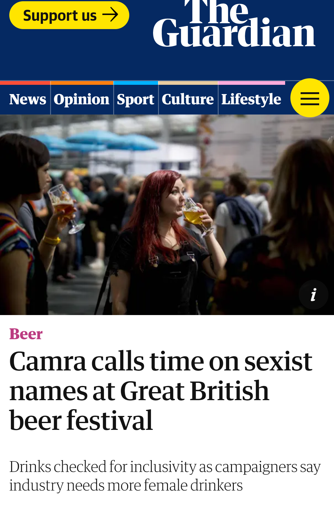 "All 1,000-plus beers, ciders and perries available at the festival have been checked to ensure they adhere to Camra’s charter and strict code of conduct, which sets out its commitment to inclusivity and diversity. The festival has also picked Stonewall as its charity of choice and will be collecting on its behalf throughout the week."