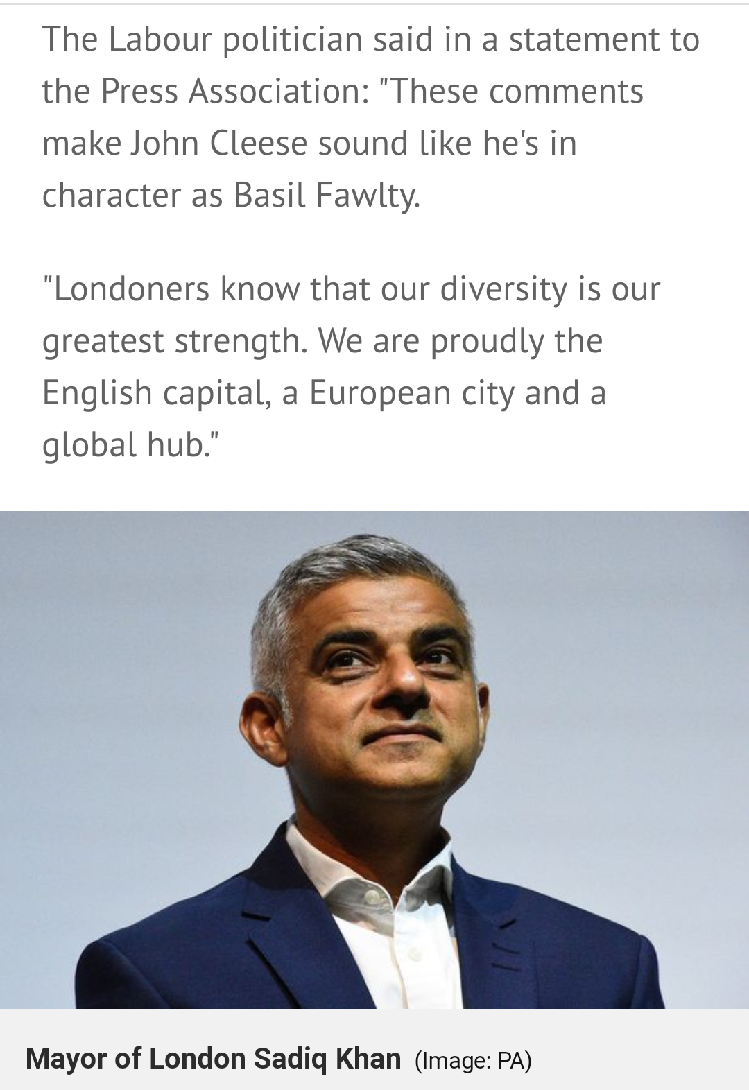 β Mayor Khan responds to John Cleese's comments that London is full of aliens