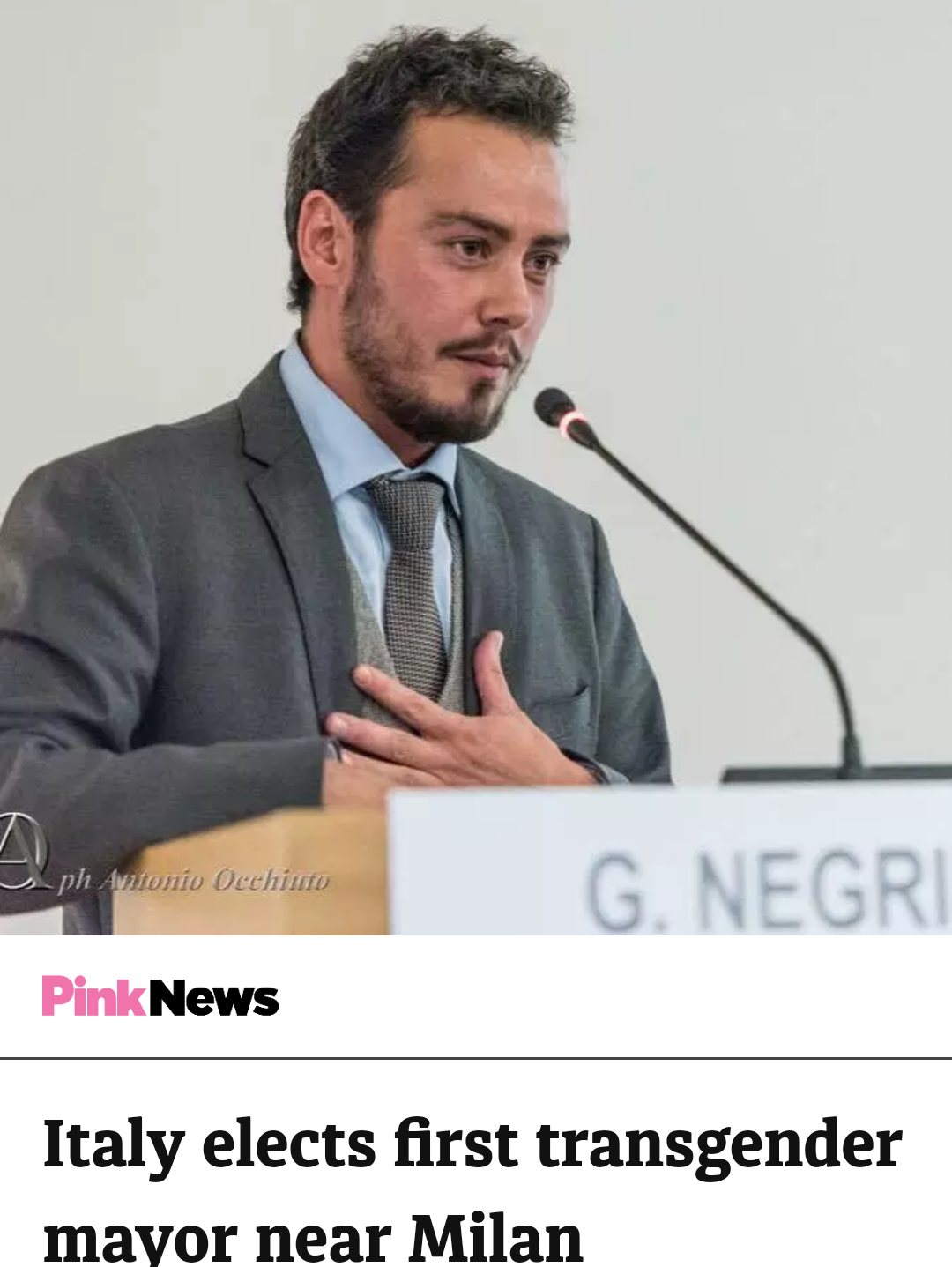 A small town south of Milan in Italy has elected a transgender activist as its mayor, in a first for the country.