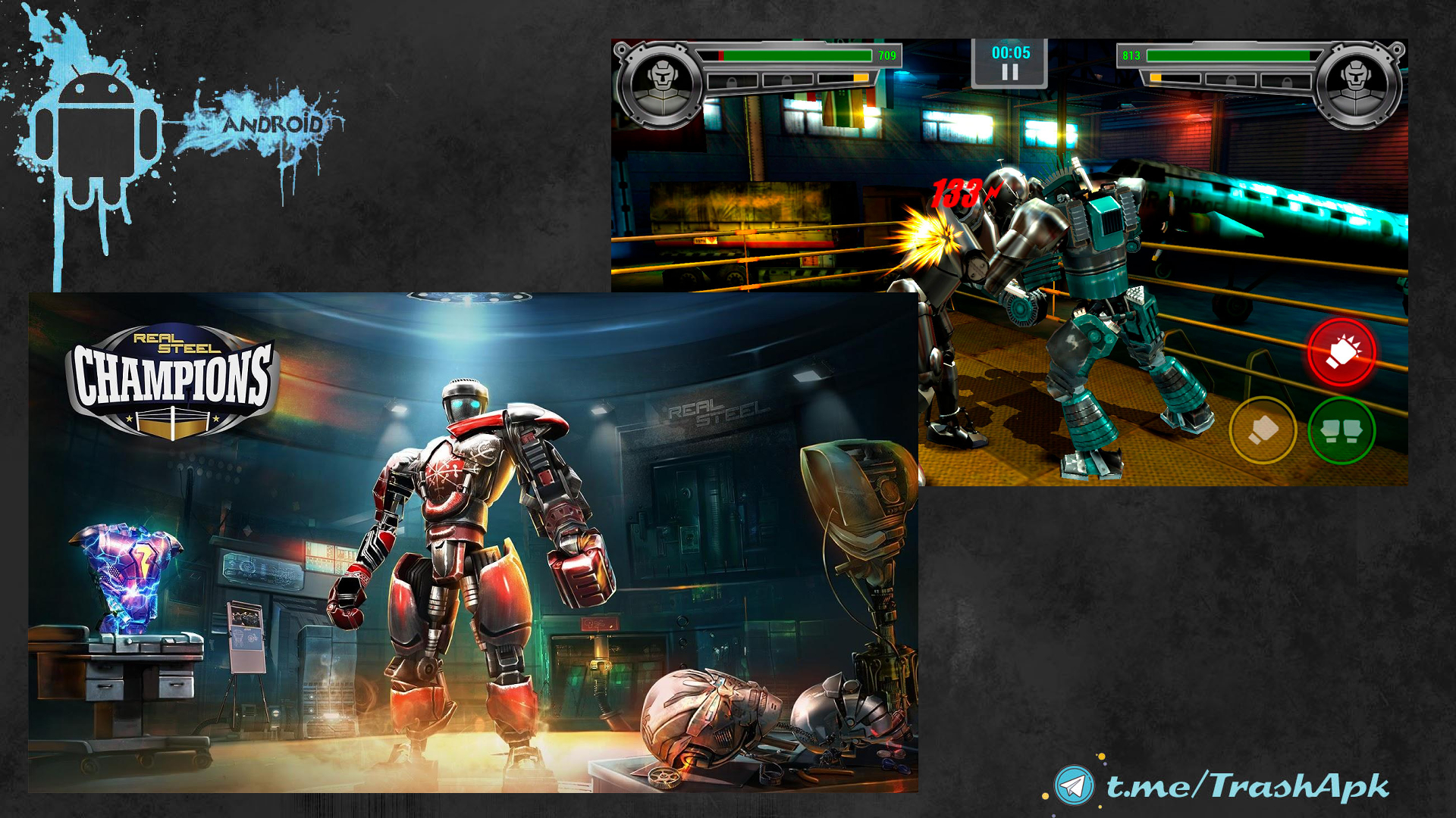 Real Steel Boxing Champions - Битва роботов выходит на новый уровень.Продолжение серии файтингов, основанных на одноименном фильме. Постройте своего собственного робота из сотен деталей. одержите победу над самыми грозными соперниками, включая новых мощнейших боссов.