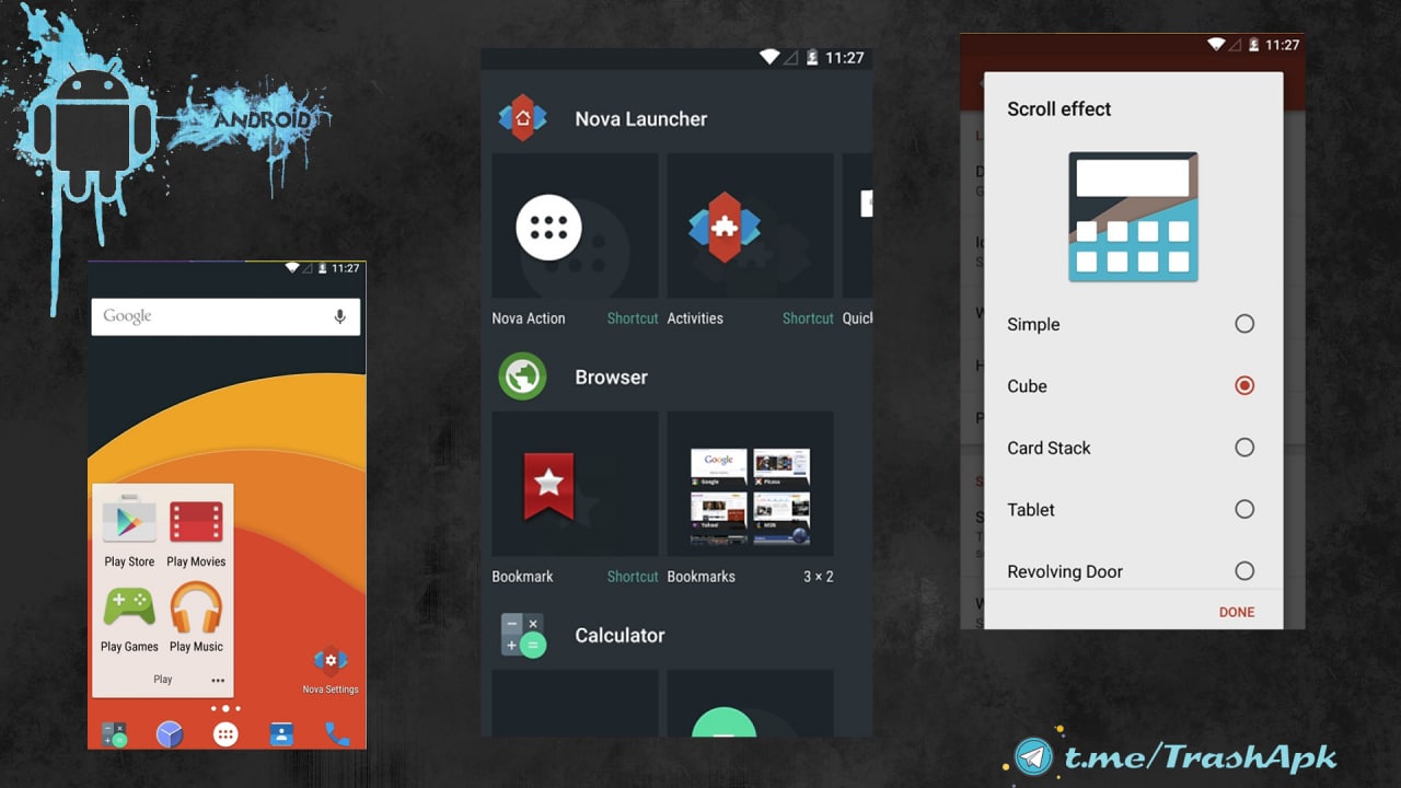 Nova Launcher - превосходит многих конкурентов своей функциональностью, вы сможете самостоятельно выбрать дизайн рабочего стола. Первый запуск покажет вам обычную оболочку большинства подобных приложений. Однако здесь гораздо больше возможностей, чем в аналогов. Nova Launcher по праву может считаться самым кастомизируемым лончером, где пользователь может изменять практически все.