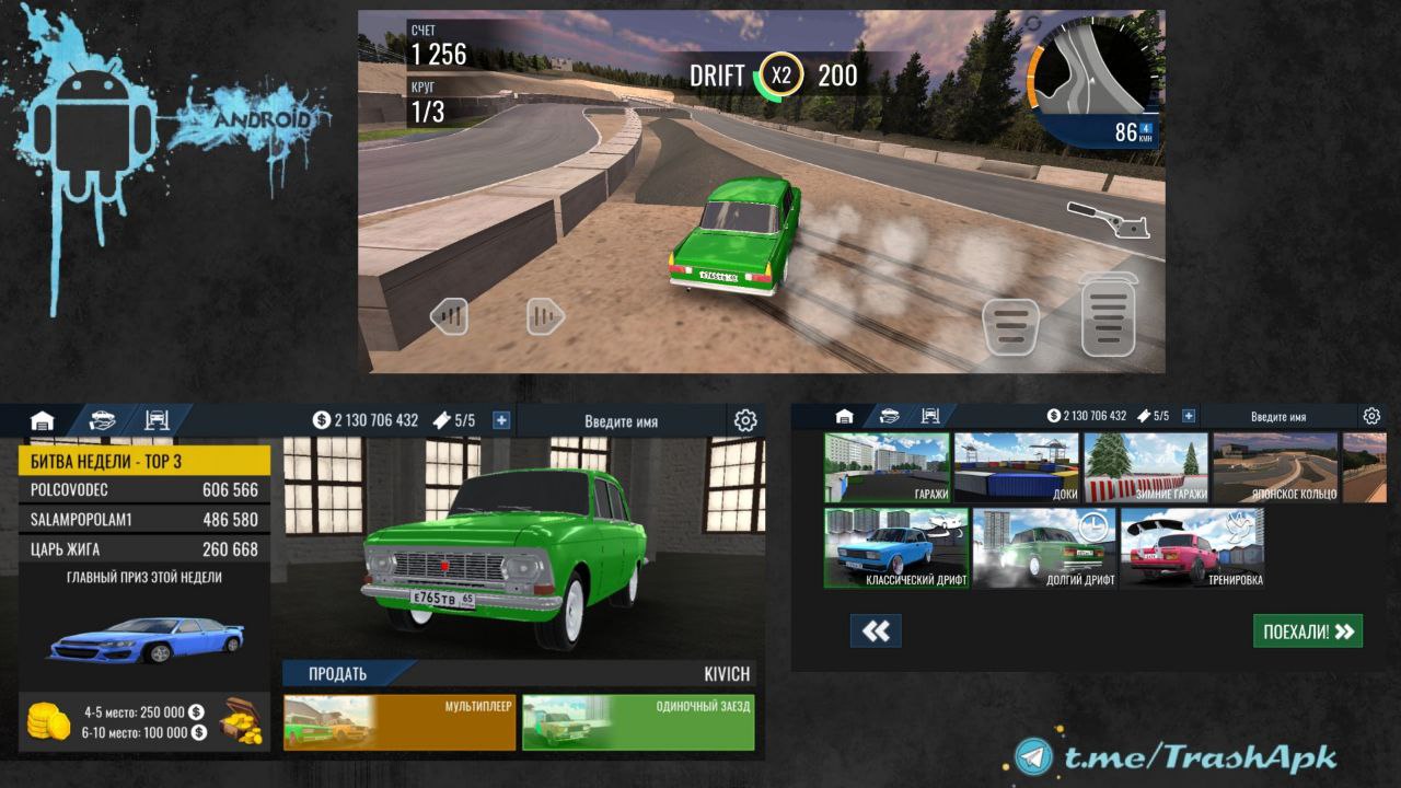 RCD - Дрифт на русских машинах - хардкорная дрифт-гонка для андроид, где вам предстоит гонять на отечественных автомобилях и получать очки за качественные, управляемые заносы.Для вас подготовлены всем знакомые отечественные тачки!