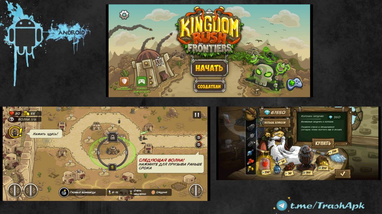 Kingdom Rush Frontiers - Самая чертовски захватывающая серия игр в жанре башенной защиты возвращается. Командуйте войсками в эпическом приключении, защищайте экзотические земли от драконов, растений-людоедов и жутких обитателей подземного мира — и все это на фоне ярких новых башен, уровней, героев и полезных предметов, которые помогут вам раздавить врагов в лепешку.