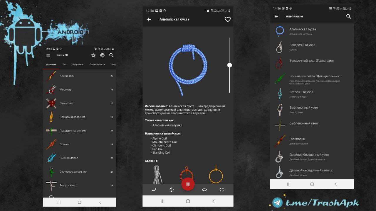 Knots 3D - Еще один отличный справочник узлов. Анимированное руководство и справочник по вязанию узлов.