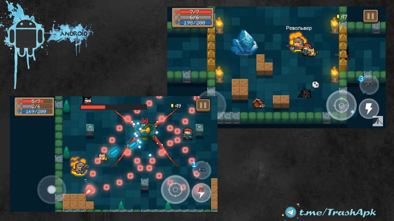 Soul Knight - Совершенно новый взгляд на столь популярный жанр как пиксельные шутеры. Это эпоха меча и револьвера. Магический камень, который поддерживал в нашем мире равновесие, украден высокотехнологичной расой пришельцев. Судьба мира висит на волоске. Сумеете ли вы вернуть артефакт? Все зависит от вас...