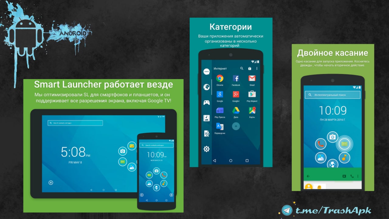 Smart Launcher - является инновационным лаунчером, благодаря минималистическому дизайну, низким требованиям к ресурсам и удобному интерфейсу, который позволяет запускать любые приложения с помощью всего лишь нескольких нажатий.