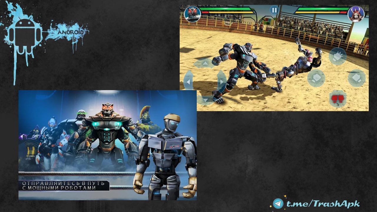 Real Steel - экшен игра в основу которой лег сюжет популярного блокбастера под названием «Живая сталь». Вам предстоит взять под свое управление команду металлических бойцов и постараться взобраться на вершину рейтинга.