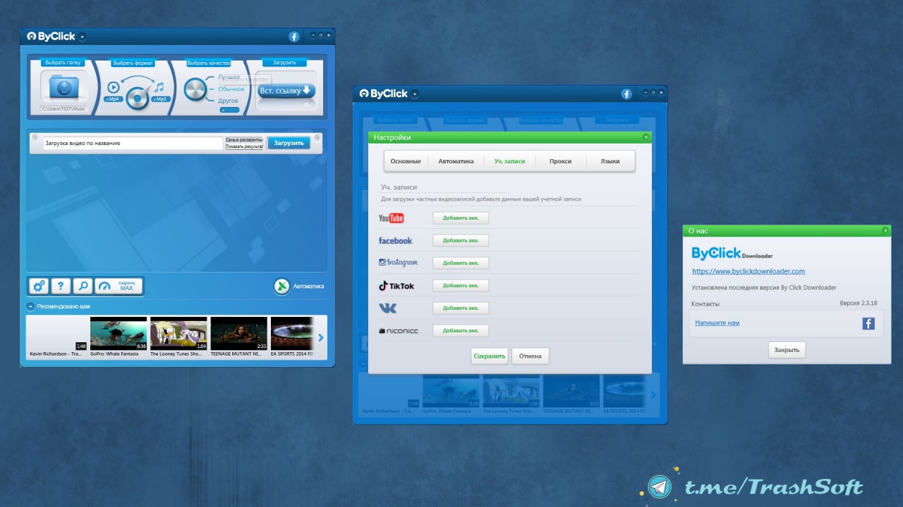 ByClick Downloader (бывший YouTube By Click) - отличный и удобный в использовании загрузчик видео роликов из YouTube, RuTube, OK. ru, Vimeo, Facebook и других сайтов. Загружайте видеозаписи в 720p, 1080p и 4K.Конвертируйте в MP3, MP4, AVI, FLV, WMV, 3GP, WEBM, MKV, WAV, AAC и M4A.