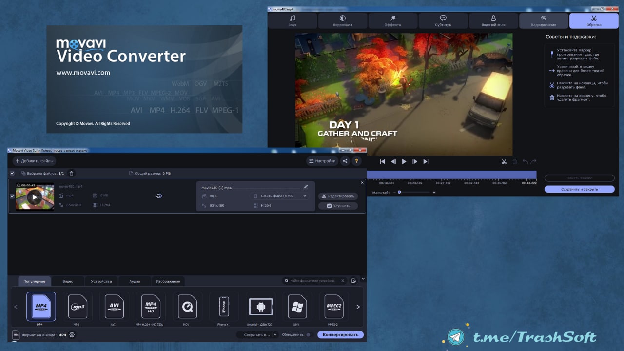Movavi Video Converter - программа для конвертации видео и аудио файлов. Конвертируйте, сохраняйте видео для iPod, iPhone, PSP, Zune, КПК, MP4 - плееров и сотовых телефонов. Загружайте онлайн - видео,записывайте DVD.